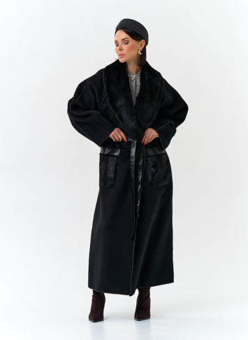 Отделка воротника - съемный мех норки, цвет черный