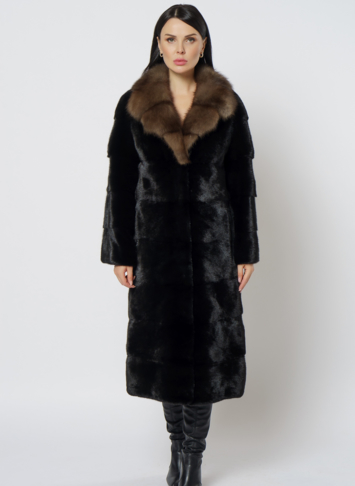 Шуба из меха норки в черном цвете сочетает в себе